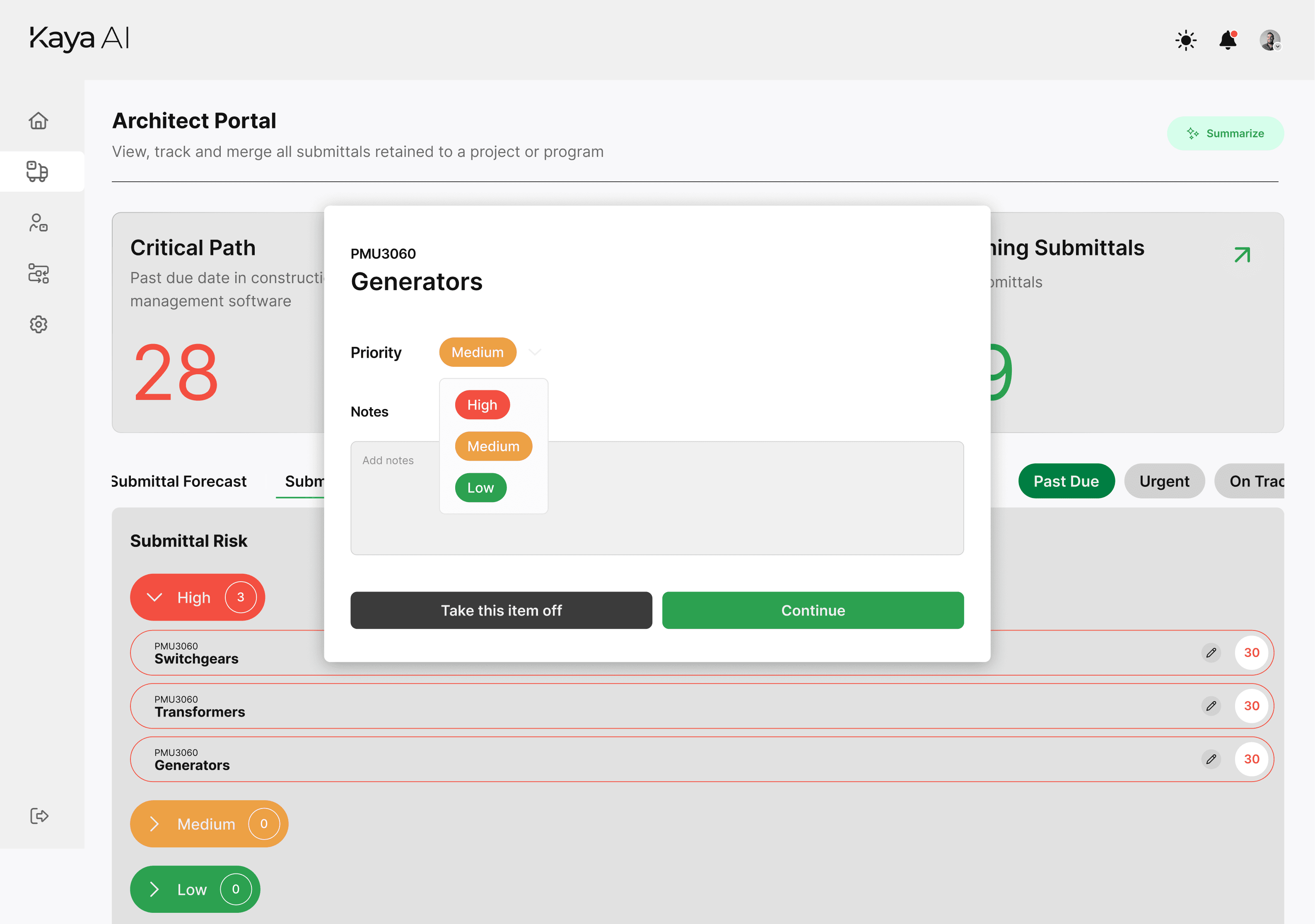 Kaya forecasts submittal risks before they disrupt the schedule.