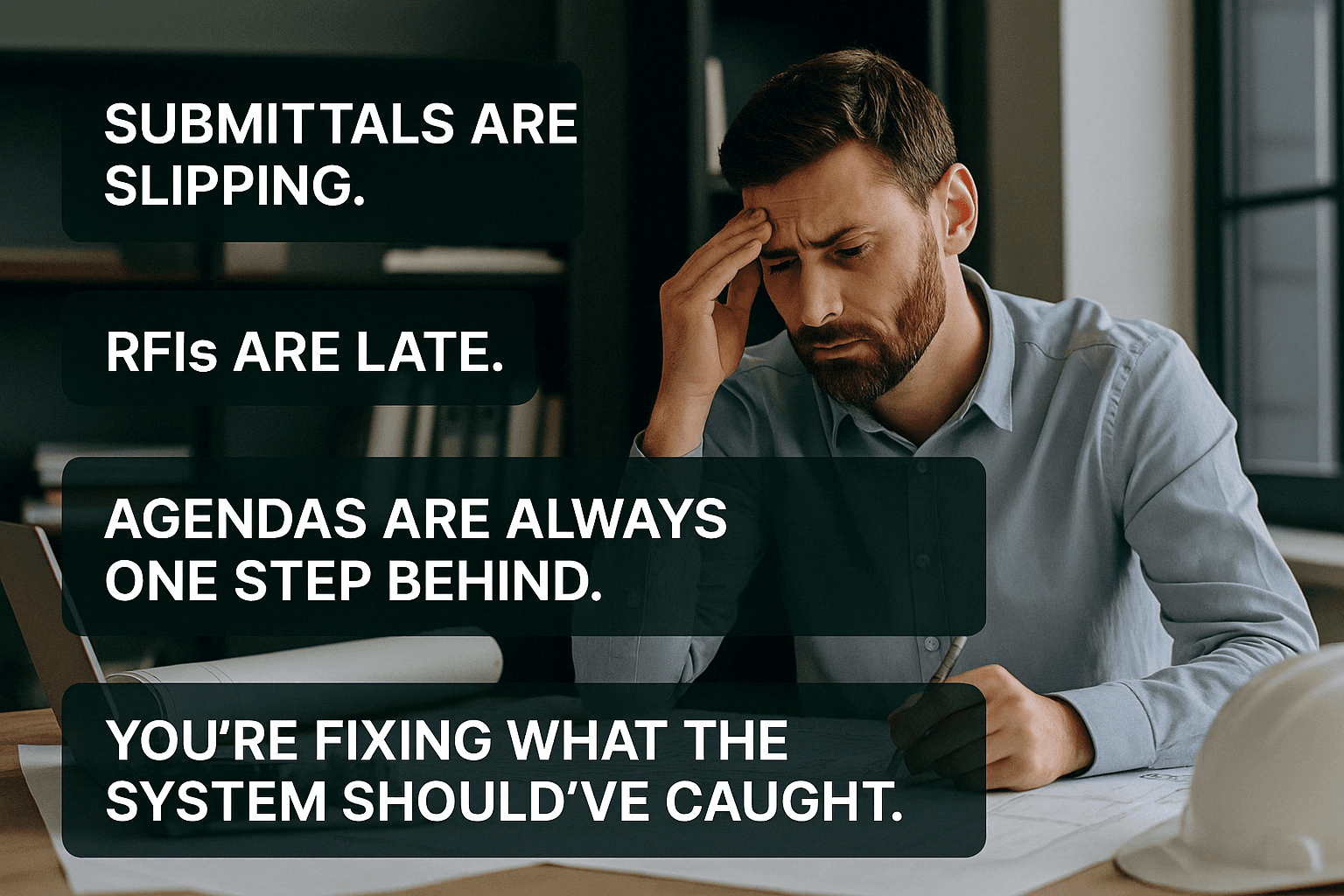 Submittals get lost in email threads, OAC meetings turn into status chases, and no one’s sure what’s holding things up. These delays aren’t just annoying—they’re eating up hours, pushing schedules out, and threatening project profitability.