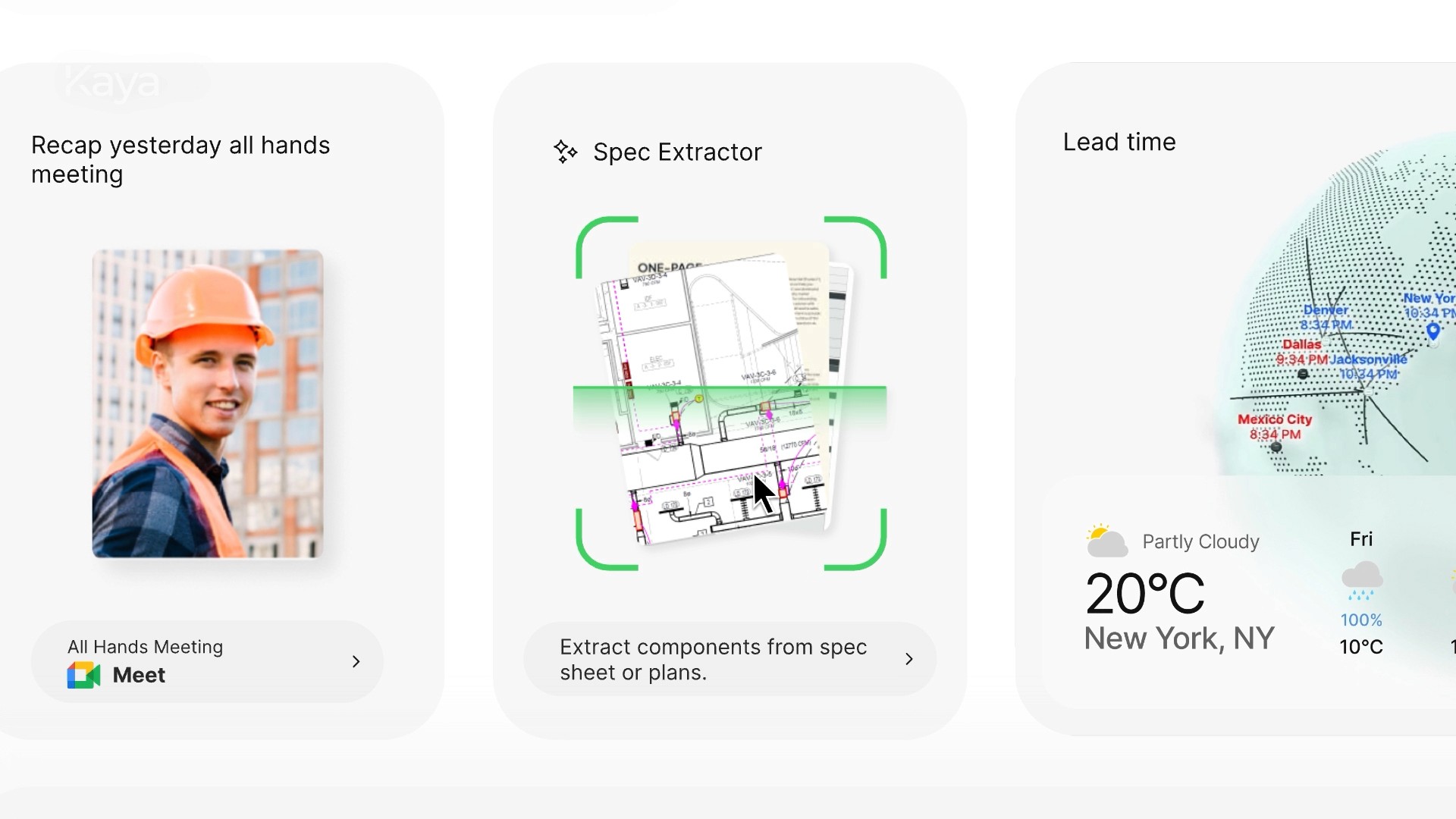 Kaya AI automatically extracts materials, quantities, and key spec data from your documents — so your team can spend less time formatting and more time building.