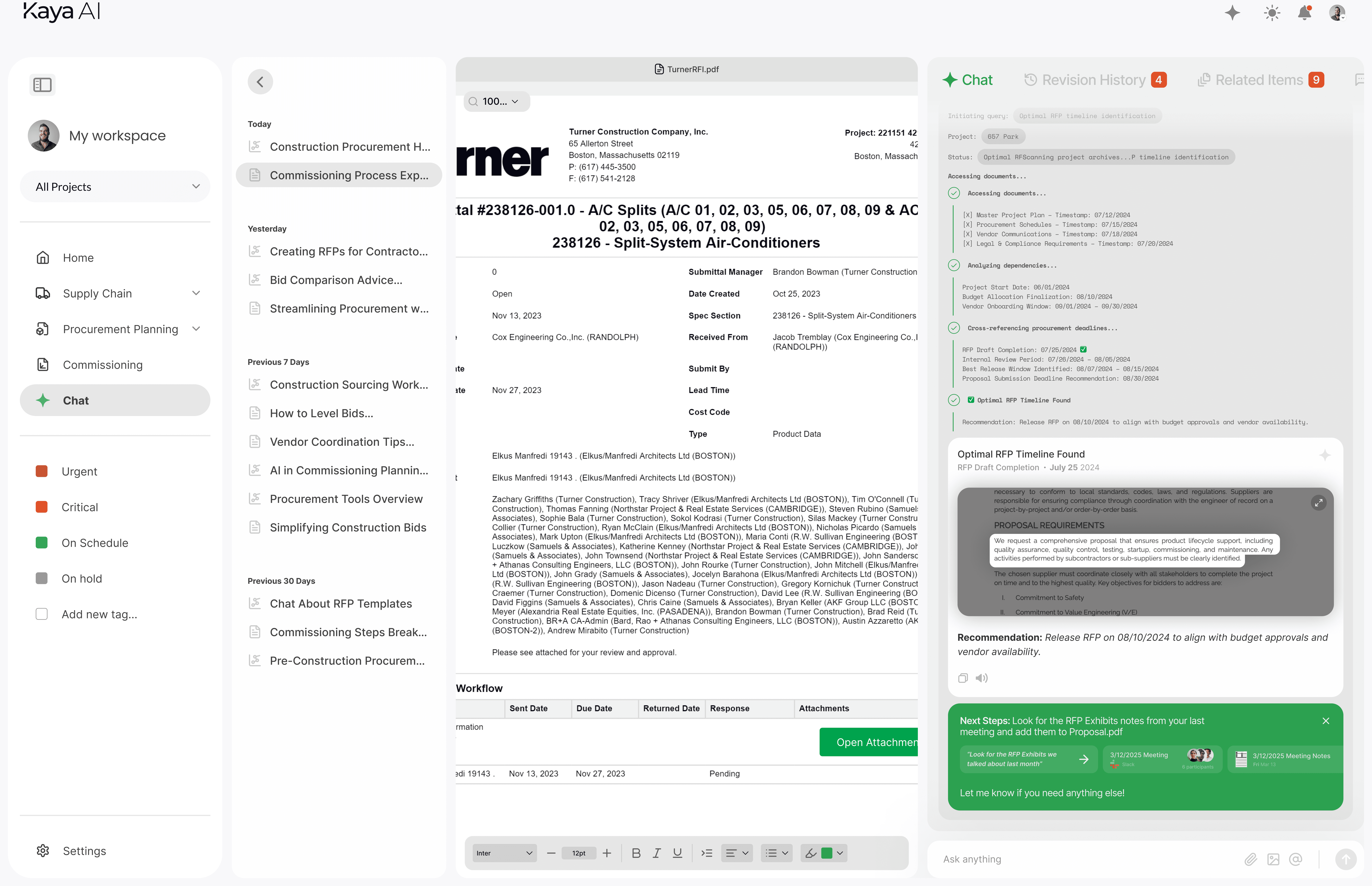 AI compares specs, submittals, and quotes—flagging mismatches, missing approvals, and outdated docs.